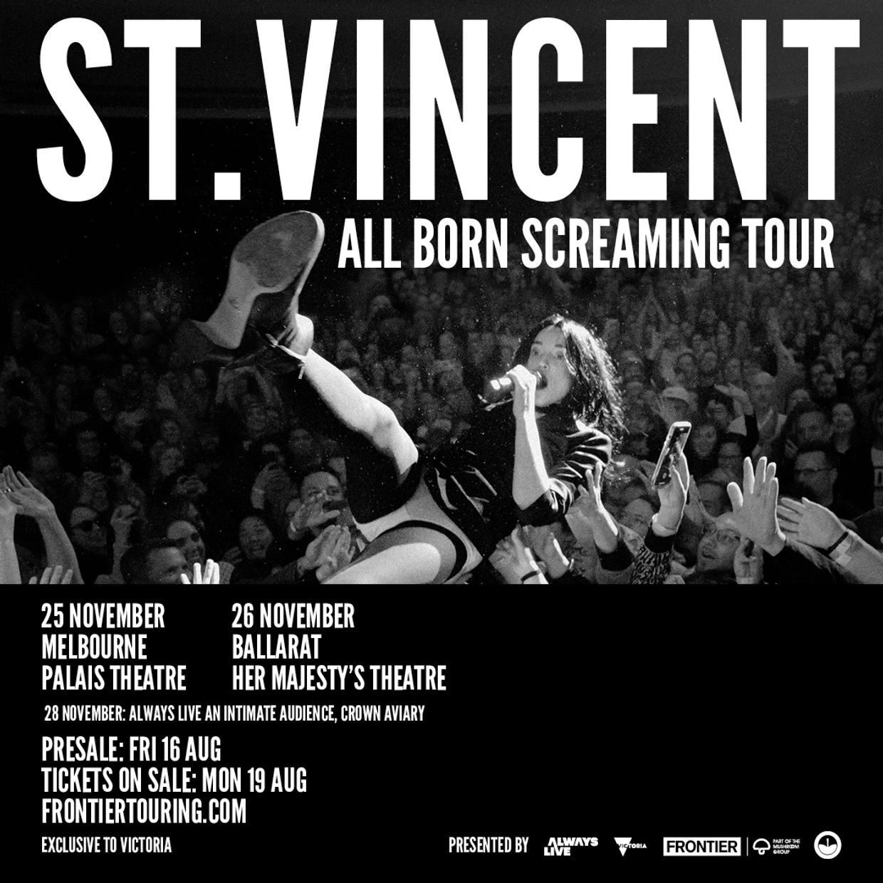 St. Vincent, known for her unrivalled artistry and captivating stage presence, returned to Melbourne last night for a spectacular performance at the iconic Palais Theatre. Playing as part of her All Born Screaming tour, this was the first of many Victorian shows; with performances set to take place in Ballarat and back in Melbourne at the Forum Theatre as part of ALWAYS LIVE. For fans who missed the Palais performance, the Forum promises to deliver another unmissable experience.