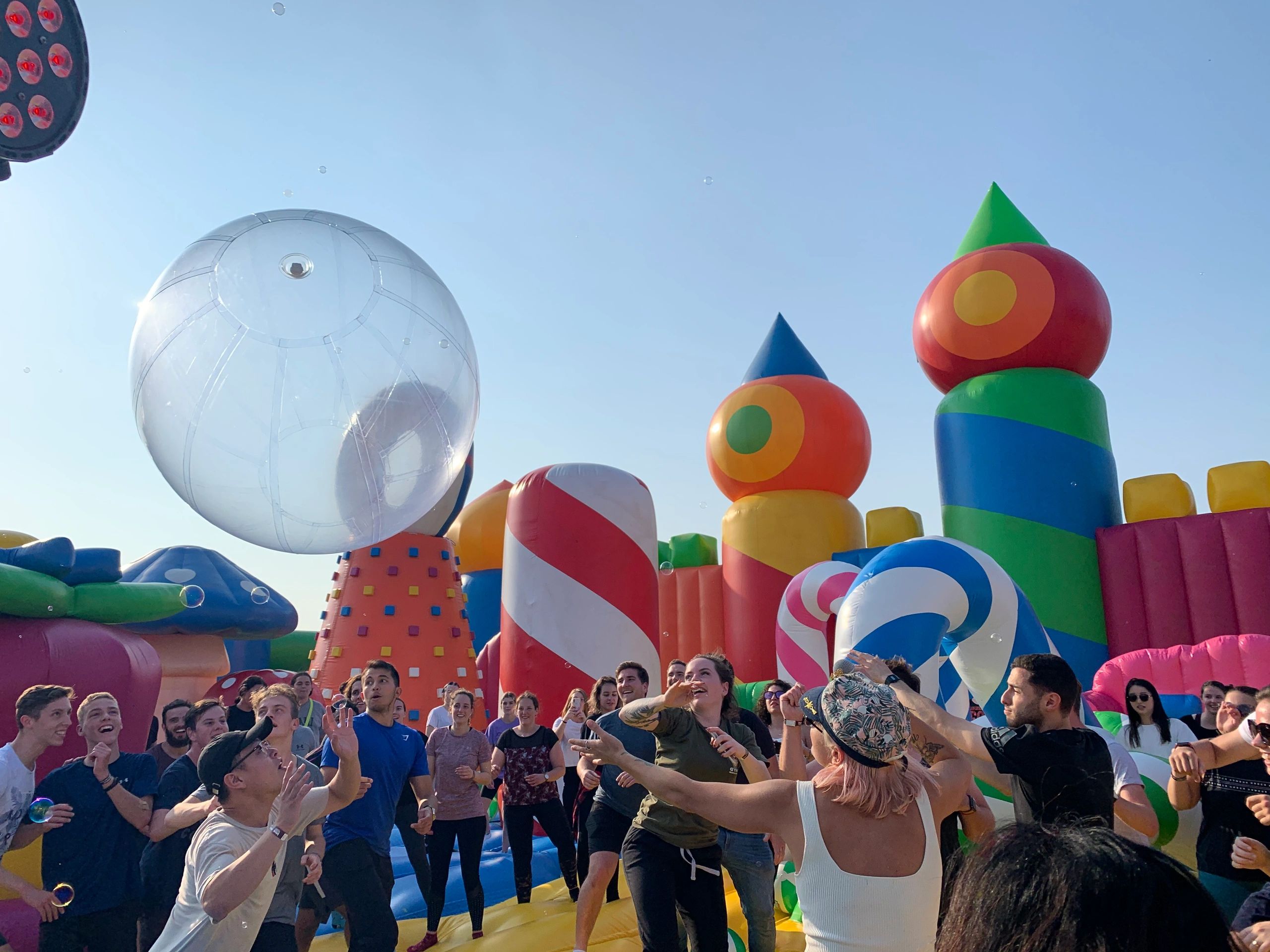We attended the adults only sessions one night, to embrace our inner-child. Running from 6-9pm, we started our evening on the World's Biggest Jumping Castle. As easily one of the coolest events we've been to, the massive castle was truly a work of art. With a DJ booth, climbing frames, basketball hoops, and even a chill out area for some downtime, there was something to keep you occupied at every second. Throughout our time in the castle, the MC invites everyone to play games and dance along to the massive hits being blasted from the speakers. Before we know it, our time is up - we're all partied out, and ready for the next set of inflatables.